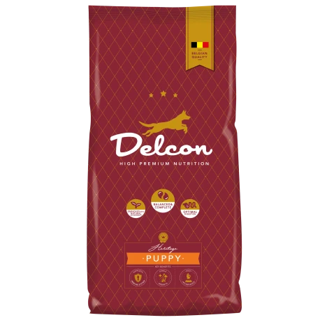 Un nouveau chiot dans la maison ? Alors vous ne voyez probablement pas la différence entre les différents types de croquettes pour chiots. Laissez-nous vous aider ! Avec Delcon Puppy, vous choisissez un aliment complet pour chiots qui favorise une croissance stable de votre chien dès le départ. Riche en protéines et en graisses, Delcon Puppy contient tous les nutriments dont votre nouveau compagnon a besoin pour traverser les premiers mois de sa vie de manière saine et équilibrée et pour renforcer son système immunitaire. Pas encore convaincu ? Testez Delcon maintenant, visitez notre site web et commandez votre pack d’essai ! Les petites races doivent passer à une variété pour adultes après 12 mois. Les races moyennes doivent passer au Delcon Junior au bout de 8 mois et les grandes races au Delcon Junior au bout de 6 mois.