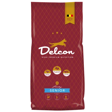 Delcon Senior apporte à votre chien tous les nutriments dont il a besoin pour vivre confortablement jusqu’à un âge avancé.