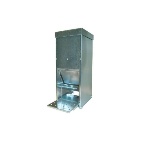 Mangeoire à bascule anti-nuisibles pour les volailles.